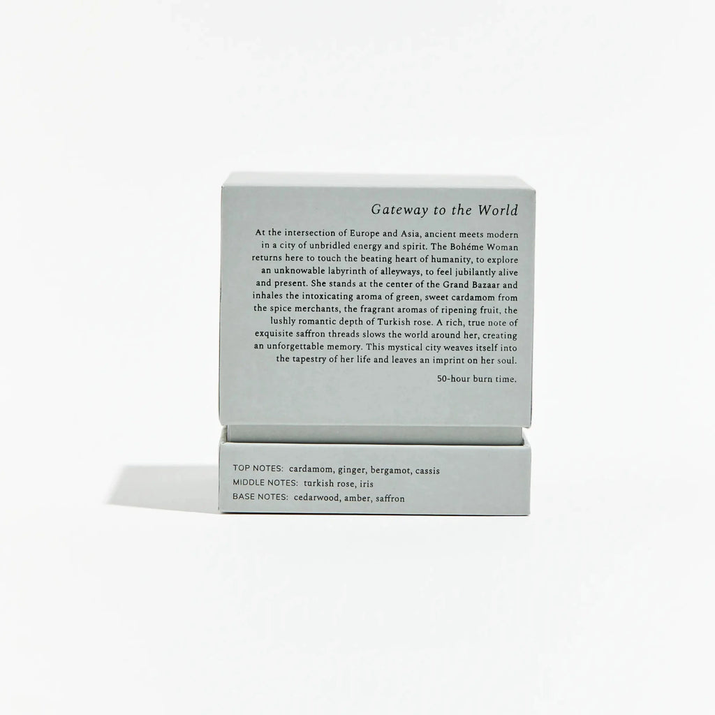 At the intersection of Europe and Asia, ancient meets modern in a city of unbridled energy and spirit. The Bohéme Woman returns here to touch the beating heart of humanity, to explore an unknowable labyrinth of alleyways, to feel jubilantly alive and present. She stands at the center of the Grand Bazaar and inhales the intoxicating aroma of green, sweet cardamom from the spice merchants, the fragrant aromas of ripening fruit, the lushly romantic depth of Turkish rose. A rich, true note of exquisite saffron threads slows the world around her, creating an unforgettable memory. This mystical city weaves itself into the tapestry of her life and leaves an imprint on her soul.