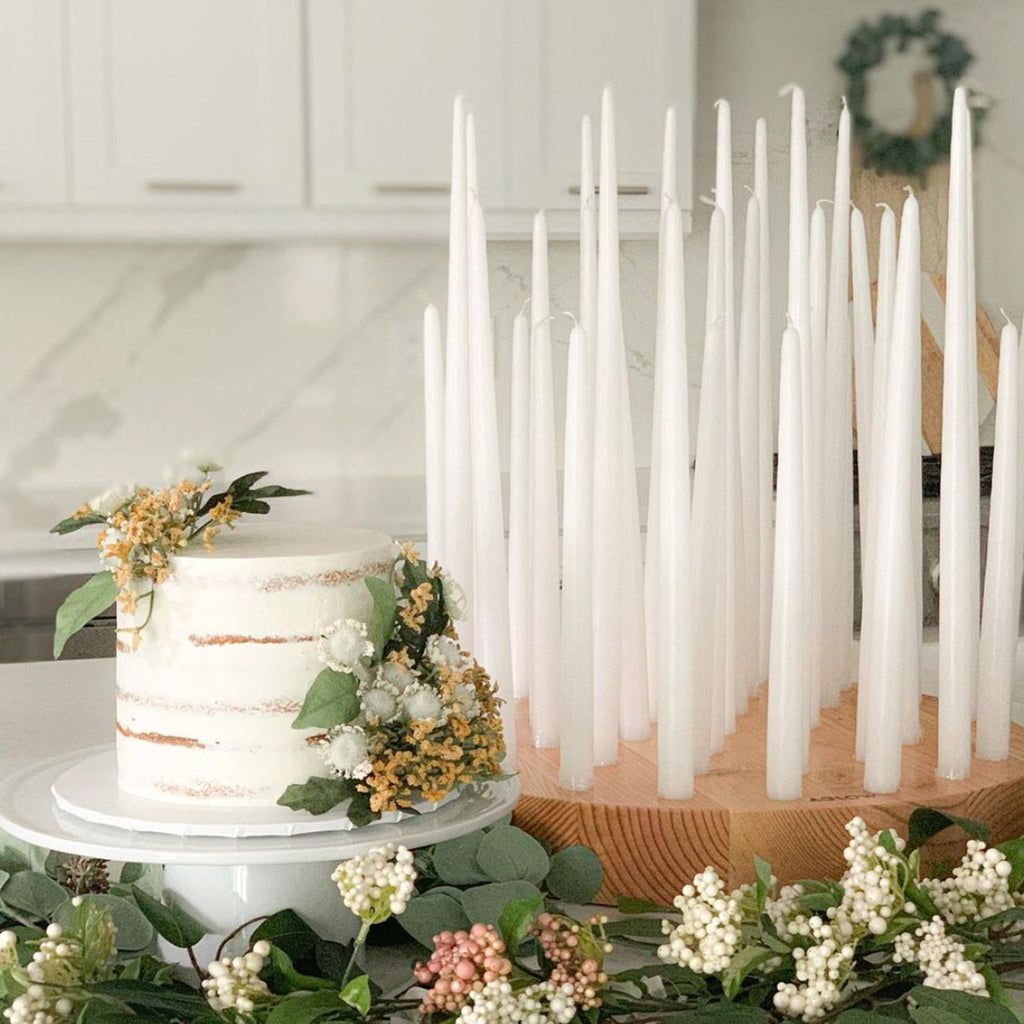It is imperative to avoid burning taper candles near any drafts, doing so will cause rapid and uneven burning and excessive dripping. Avoid burning candles near combustible materials. Always store candles in a cool, dark, dry place. They should be stored flat to prevent warping. Always keep wicks trimmed to one-half inch. Long or crooked wicks cause uneven burning and dripping. Candles will fade if left in the light for an extended period of time. Never put candles in a window or directly expose to bright outdoor light or indoor spotlights.